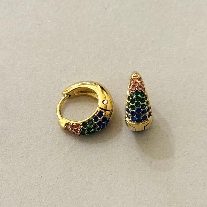 Elois Stainless Steel Hoop Earrings w Zirconium Stones