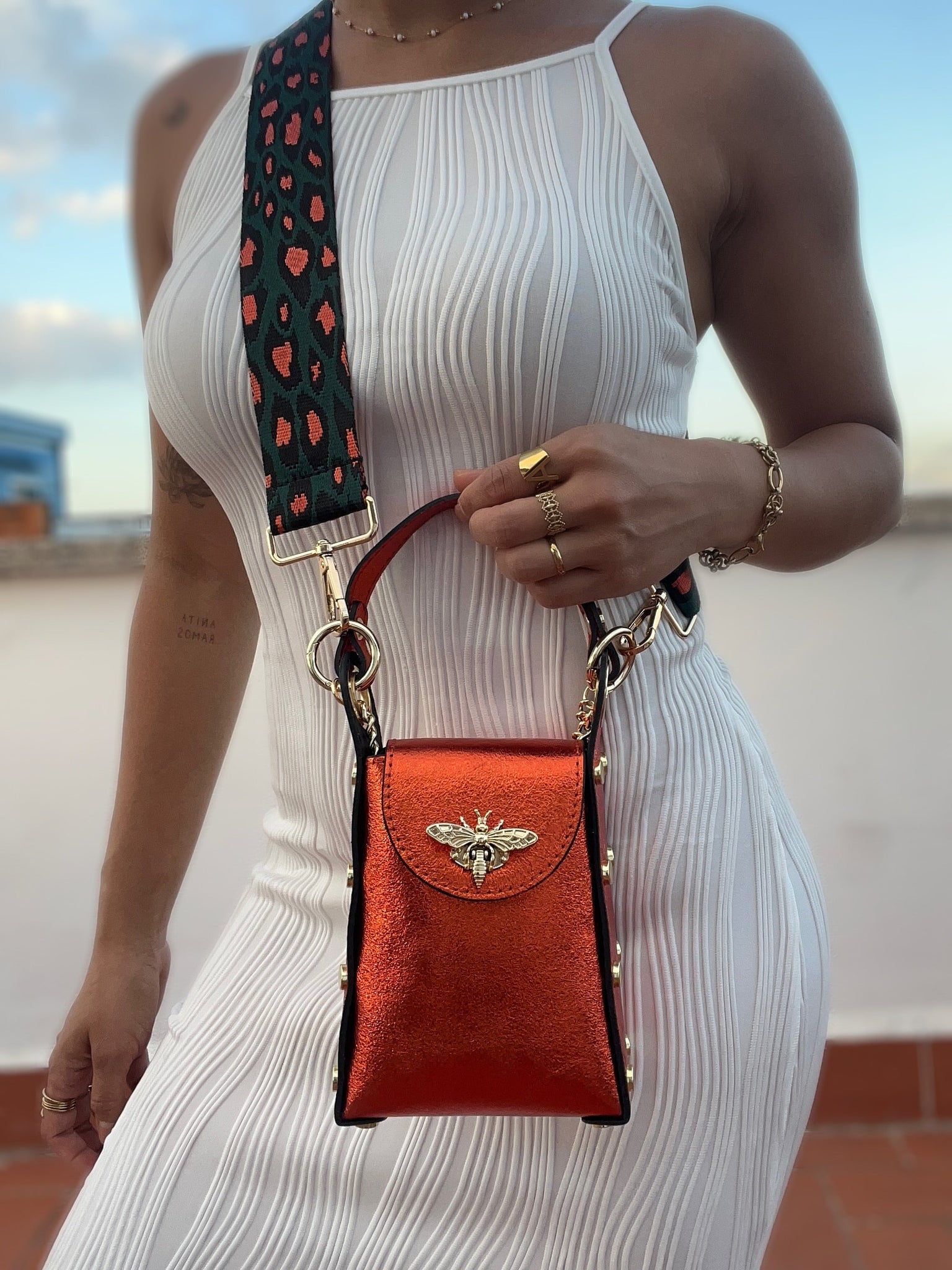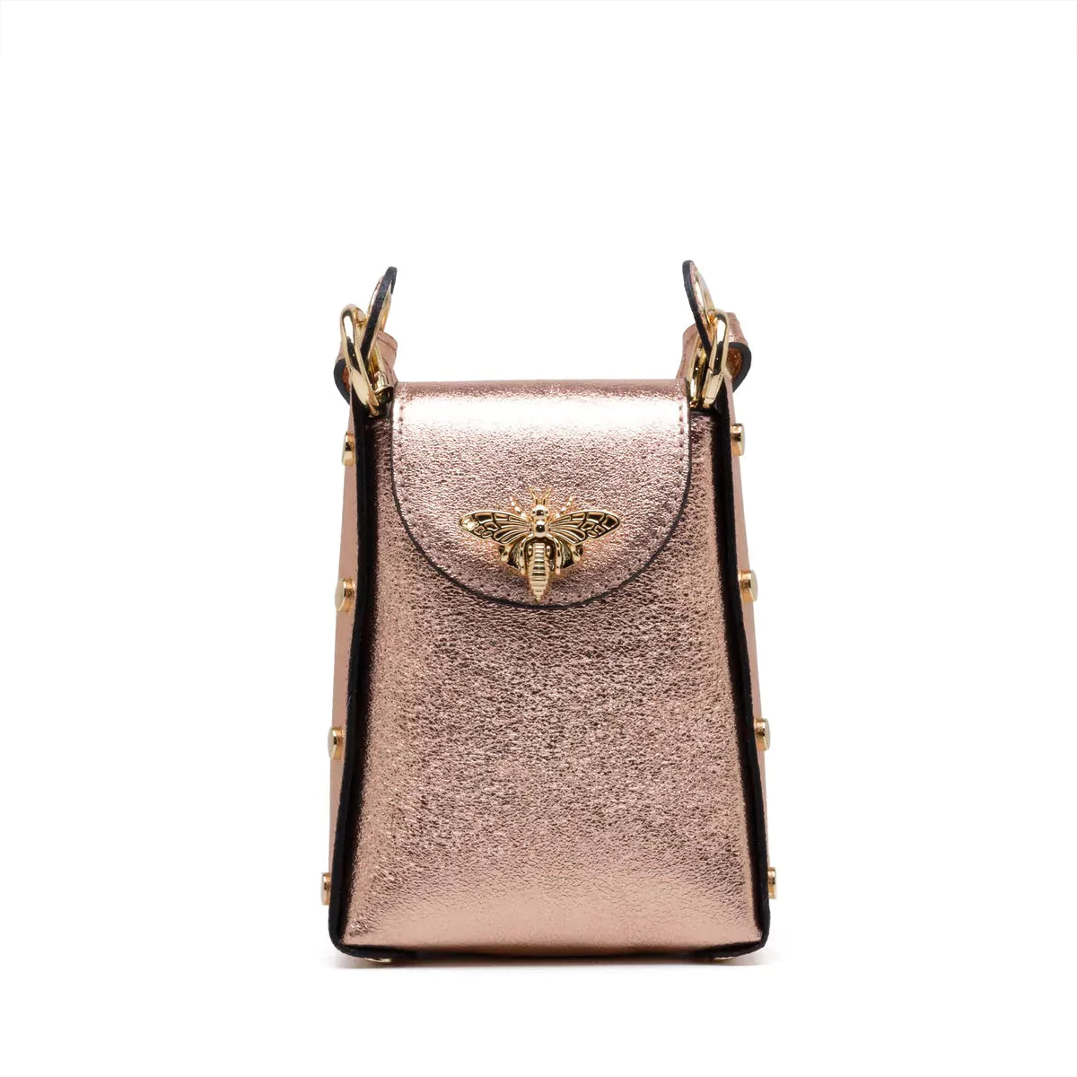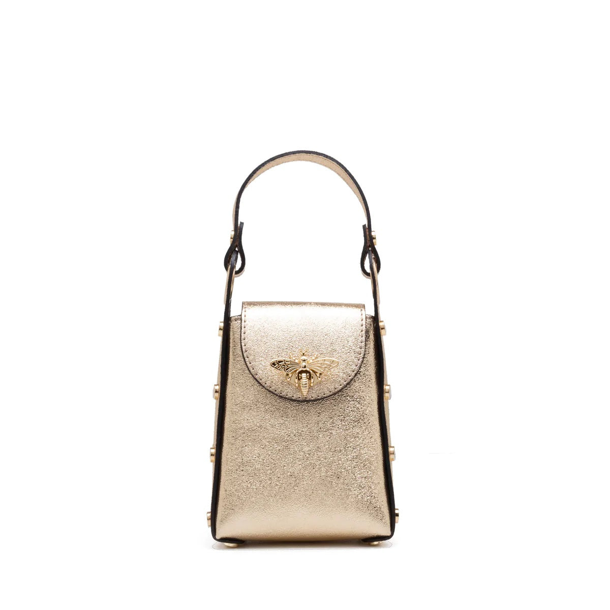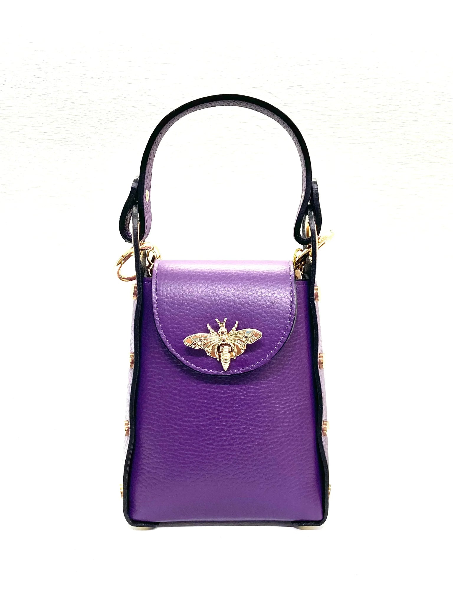 Bee Stylish with our Bee Bag Collection! This double handle bag has a removable strap that allows you to carry it comfortably on your shoulder or as a strap-on bag. This bag is perfect for every day use, to always have your belongings at hand as it has perfect room for your phone,wallet and keys. It's durable and easy to clean. Genuine leather and handmade in Italy.