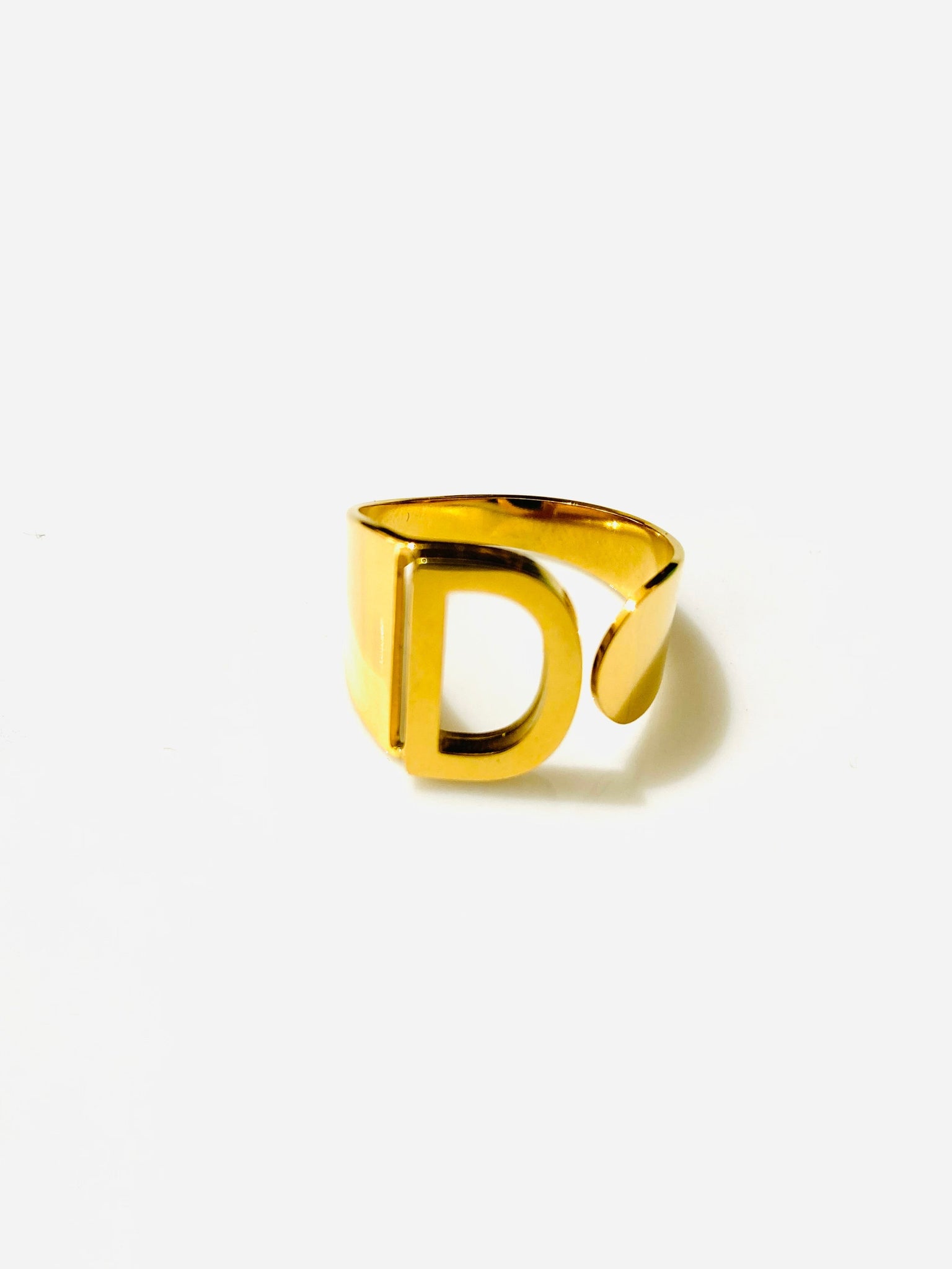Easily adjustable gold plated stainless steel initial rings. A beautiful gift for you, your family and for your friends. Make it personal. Make it special.