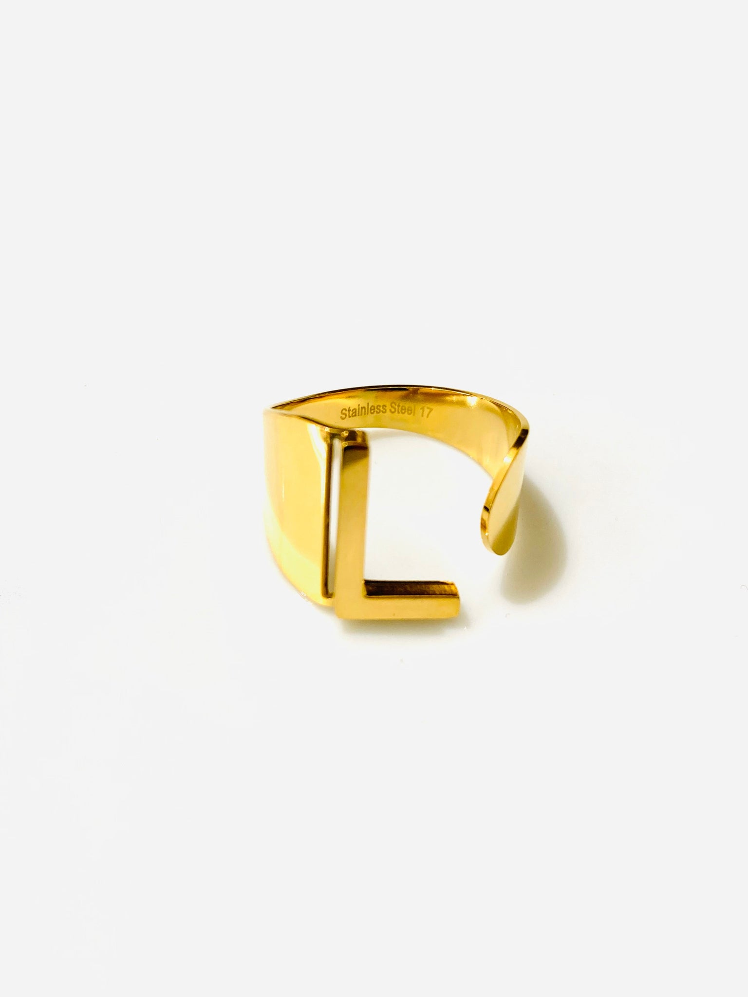 Easily adjustable gold plated stainless steel initial rings. A beautiful gift for you, your family and for your friends. Make it personal. Make it special.