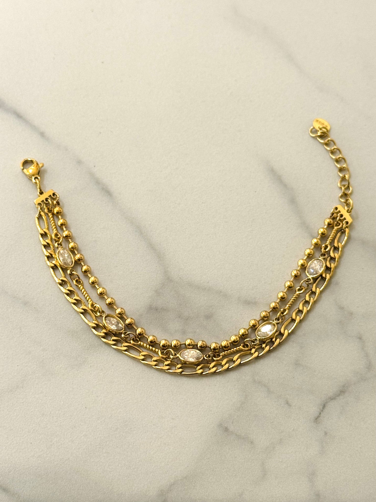 Stainless Steel Multichain Bracelet w Zirconium Stones